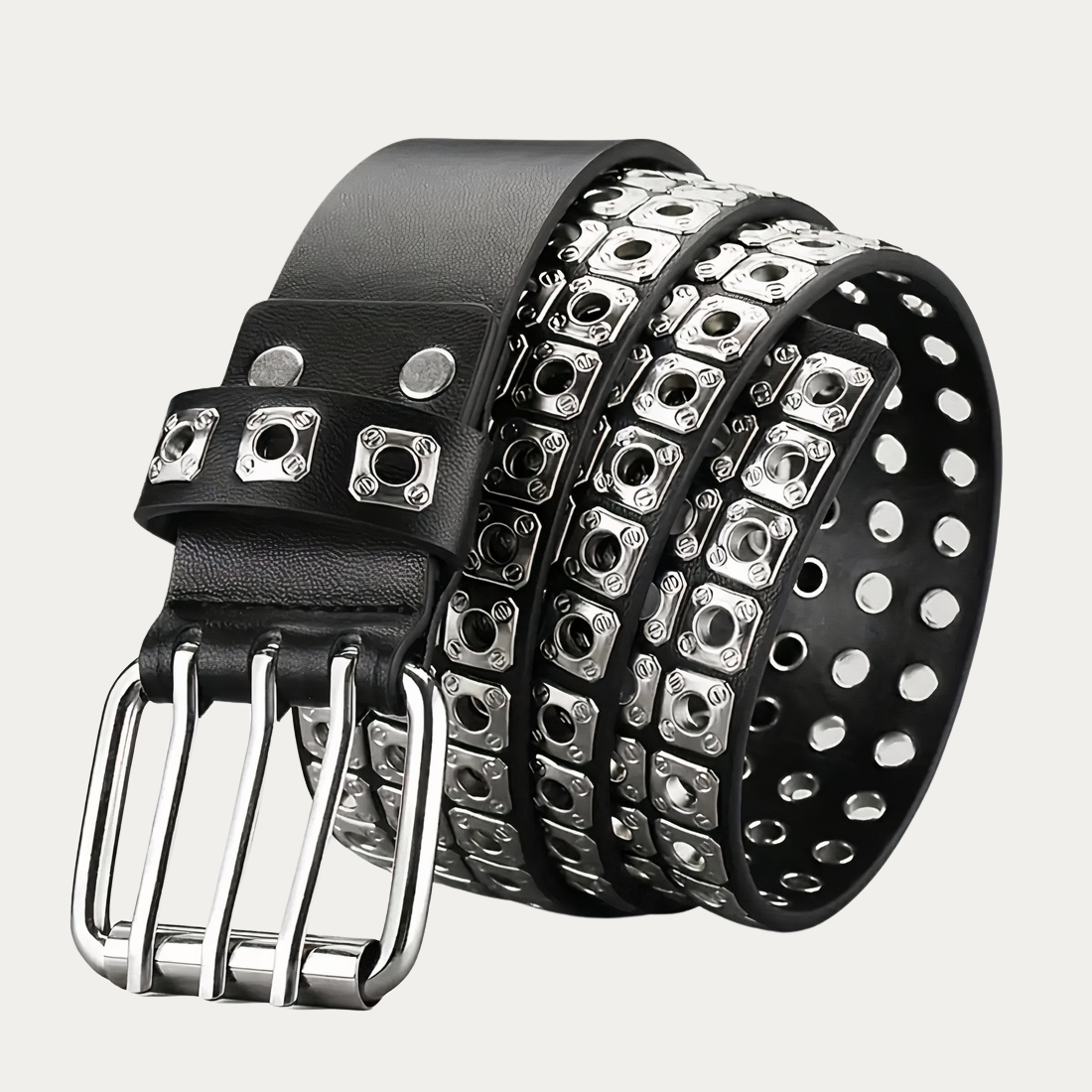 Notre ceinture rétro à rivets carrés pour femmes détourne les codes industriels avec une rare élégance. La géométrie des rivets s’impose avec force, sans verser dans l’excès.