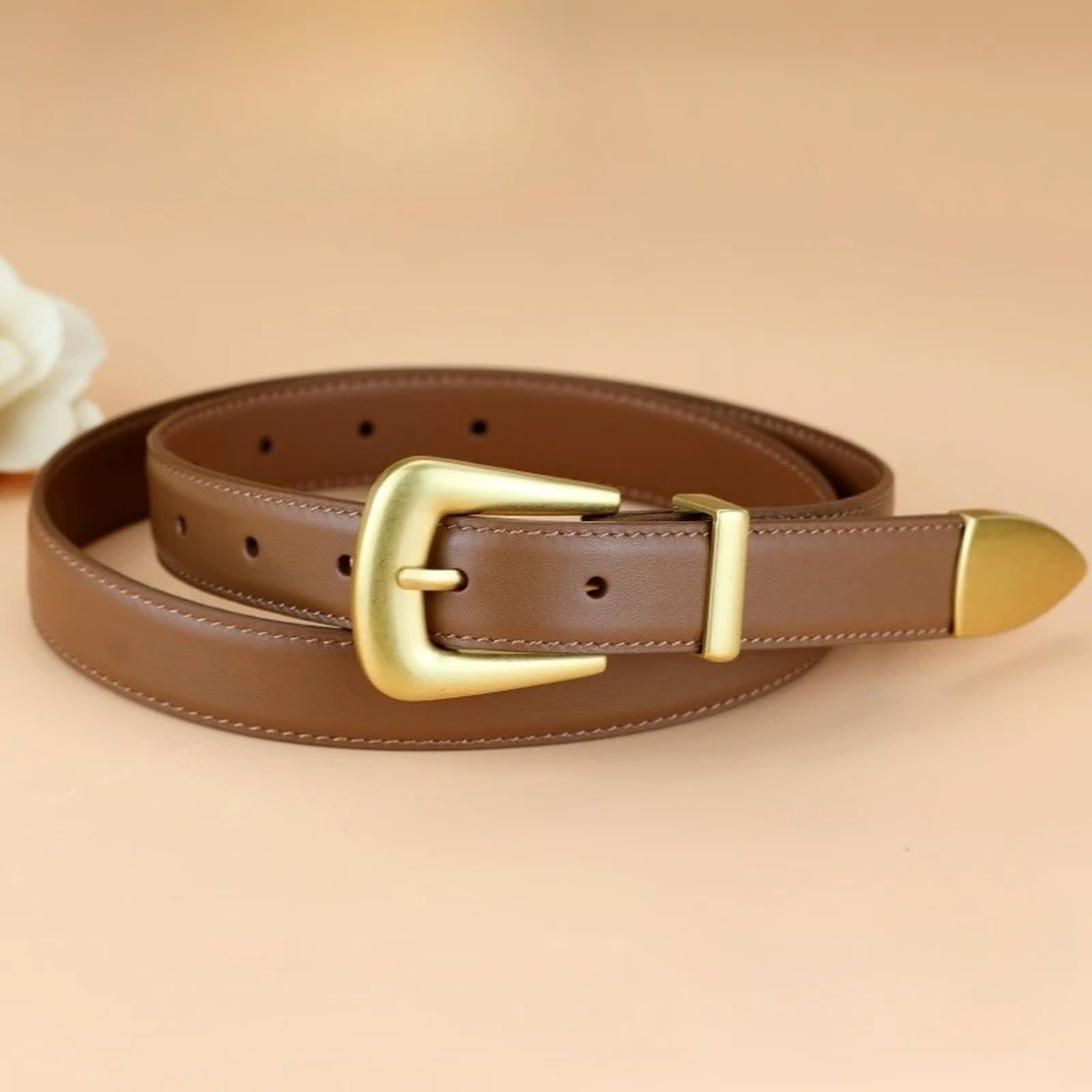 Parce que l’élégance, la vraie, n’a rien à prouver. Cette ceinture en cuir pour femme avec boucle dorée ne surjoue rien : elle encadre, structure, affirme. Sa ligne nette et sa boucle mate rehaussent vos tenues avec calme.
